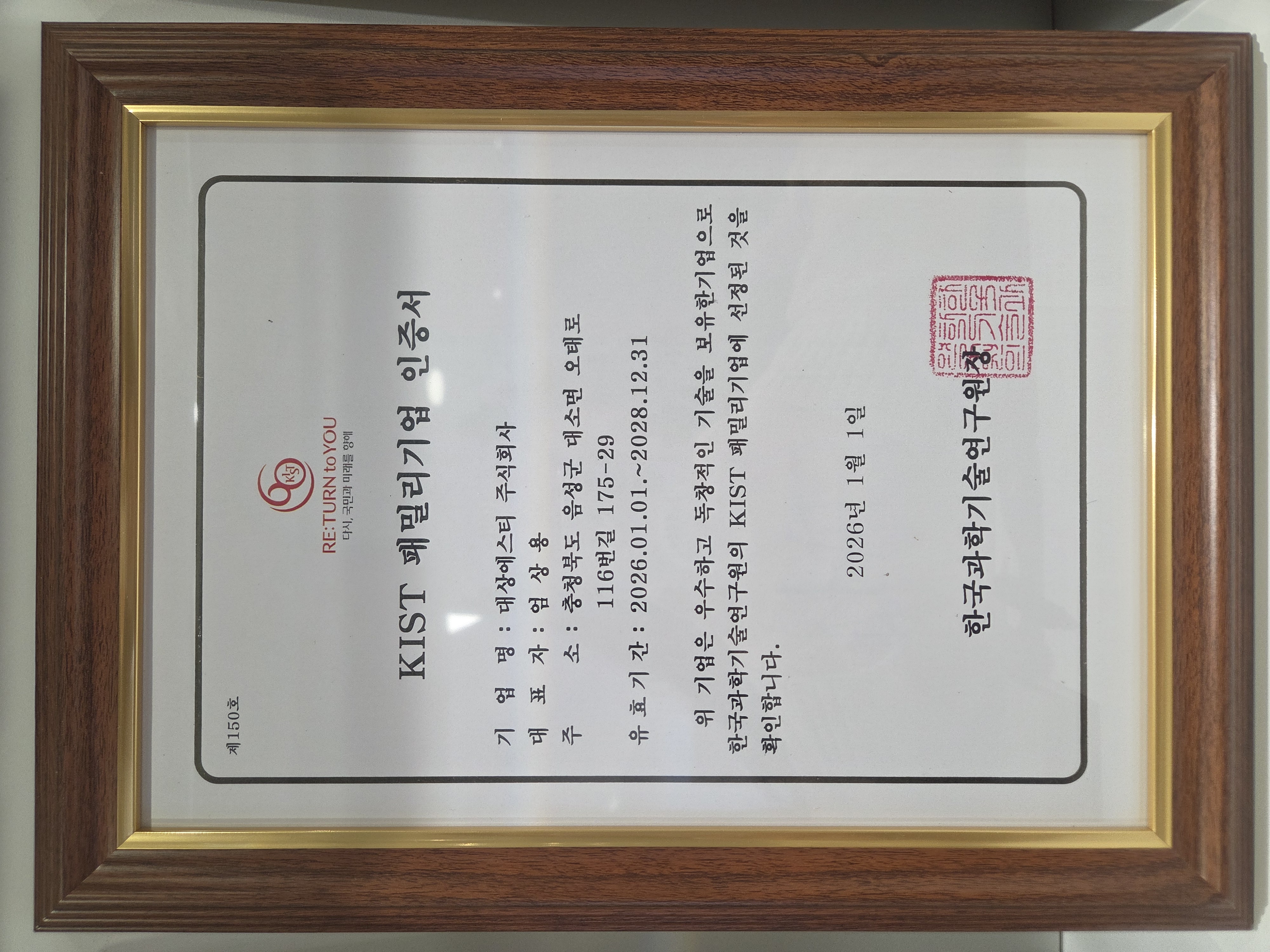 We are pleased to announce that our company has been selected as a Family Company of the Korea Institute of Science and Technology (KIST).