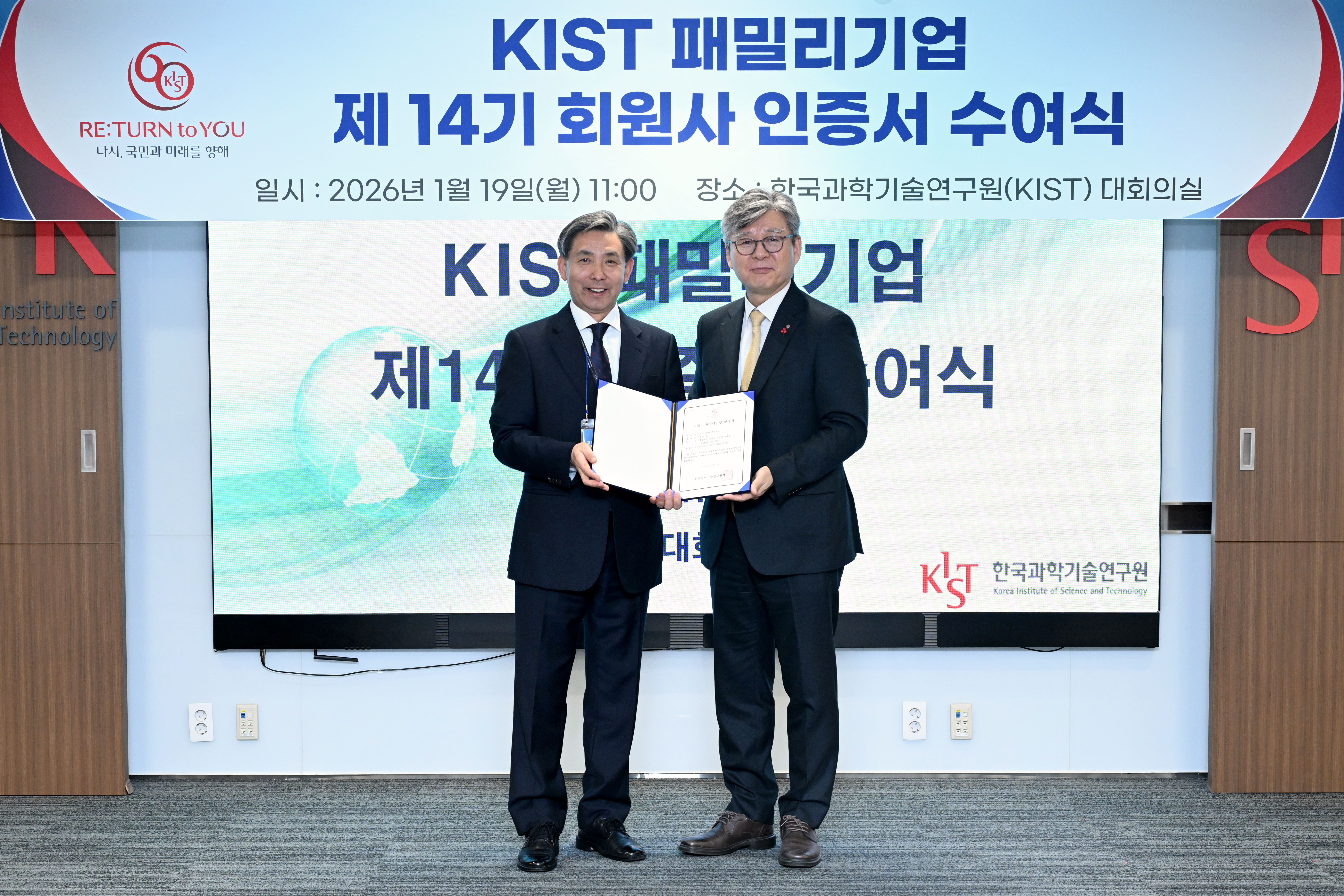 당사가 한국과학기술연구원(KIST) 의 Family기업으로 선정되었습니다.